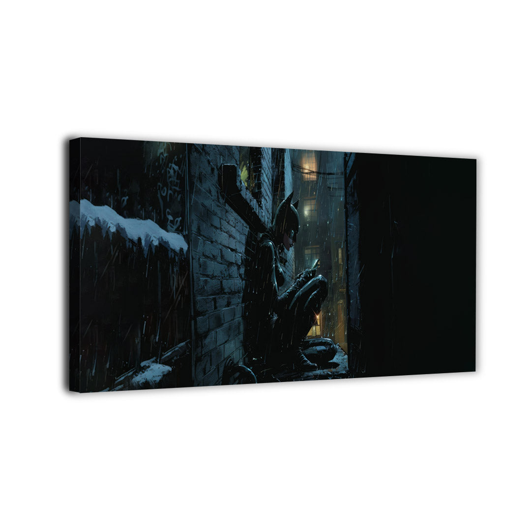 Slip into the shadows as Catwoman sits lost in thought under the city's cold rain, tucked against a brick wall... Read more