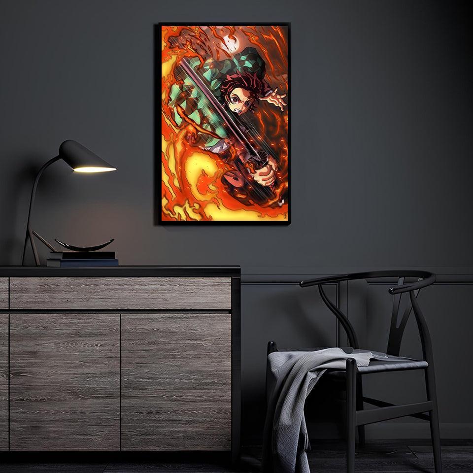 Tanjiro Kamado stands at the center of the chaos—captured mid-strike with his Nichirin blade ablaze, flames swirling in vivid motion.... Read more