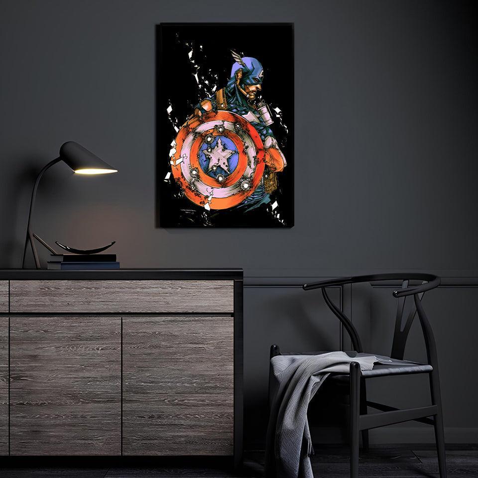 Unyielding Shield captures the legendary soldier standing resolute — shield battered with bullet marks glinting like proof of endurance as... Read more
