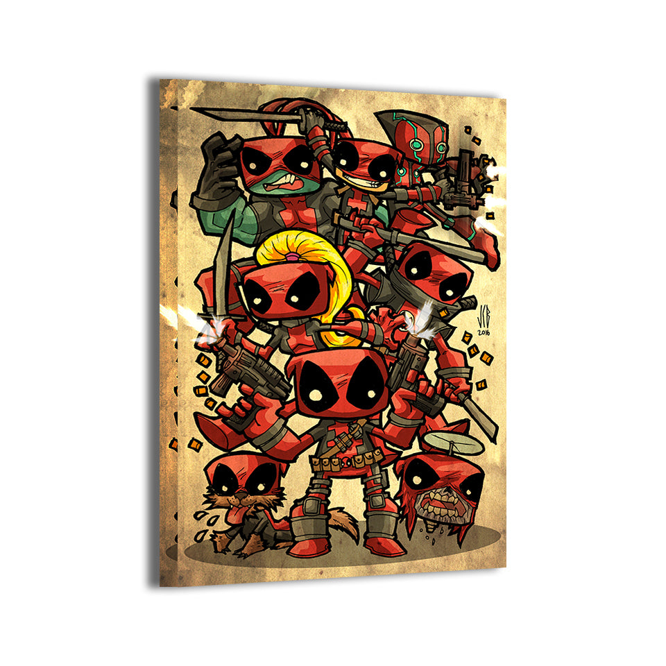 Witness the Merc with a Mouth and his variants unite in adorable chibi form as Deadpool, Lady Deadpool, and Zombie Deadpool gather together in playful chaos, each version radiating the irreverent humor and fourth-wall-breaking antics that make Deadpool Marvel's most unpredictable hero. Every detail captures their legendary spirit—the wisecracking mercenary whose healing factor makes him nearly immortal, the female counterpart from an alternate universe, and the undead version who proves even zombification can't stop the jokes. This is Deadpool at his most charming—hilarious, chaotic, and utterly delightful.