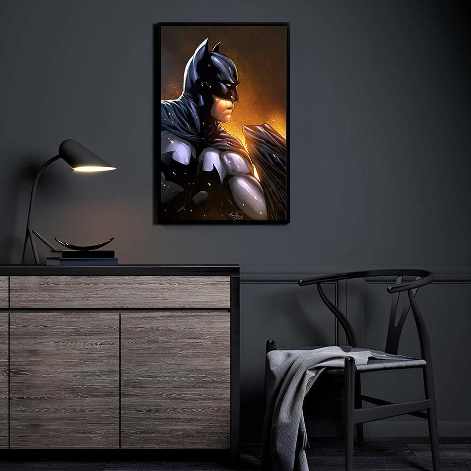 Witness the Dark Knight emerge from the embers as Batman stands silhouetted against a backdrop of glowing cinders and ash,... Read more