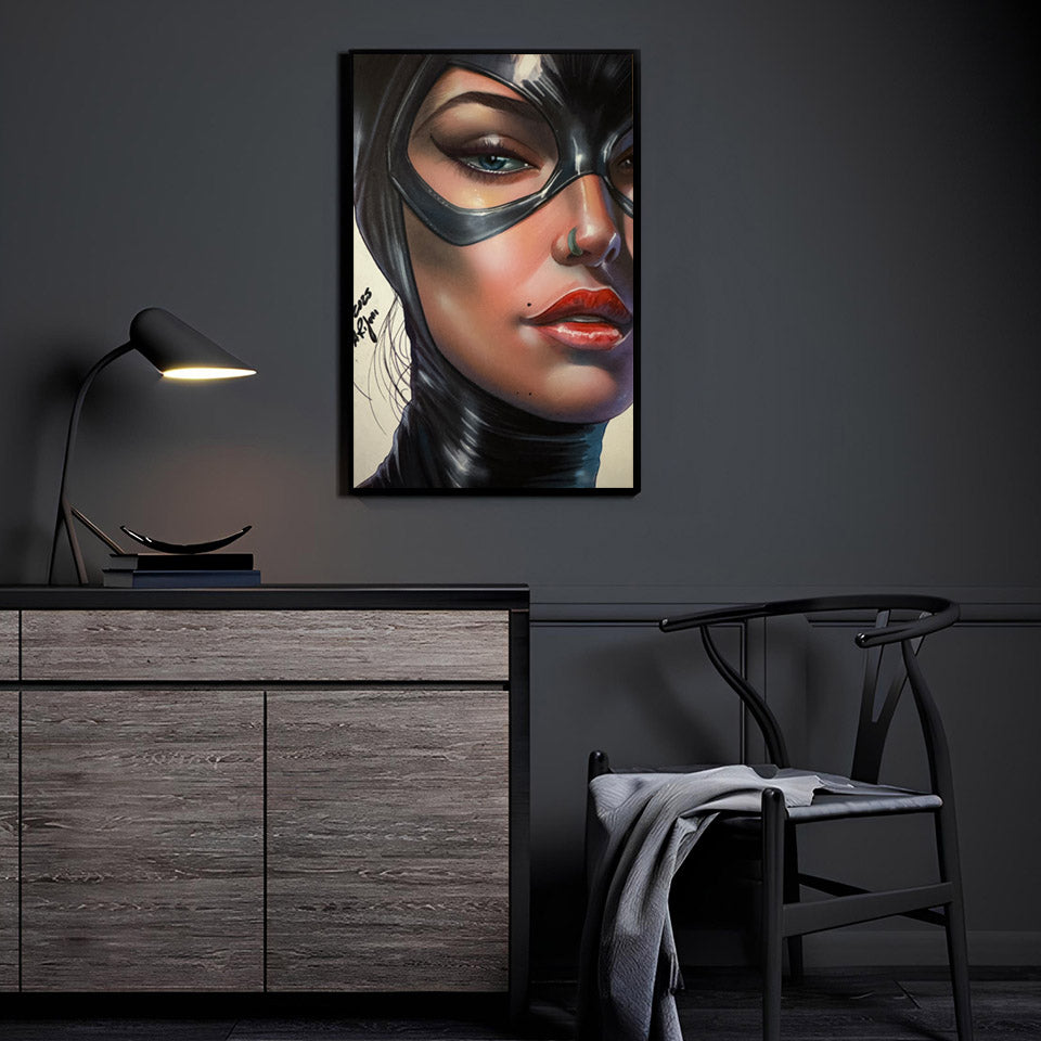 Intense gaze, sleek mask, and dangerous allure—a thief radiating mystery and power. The composition captures feline grace with dramatic lighting,... Read more