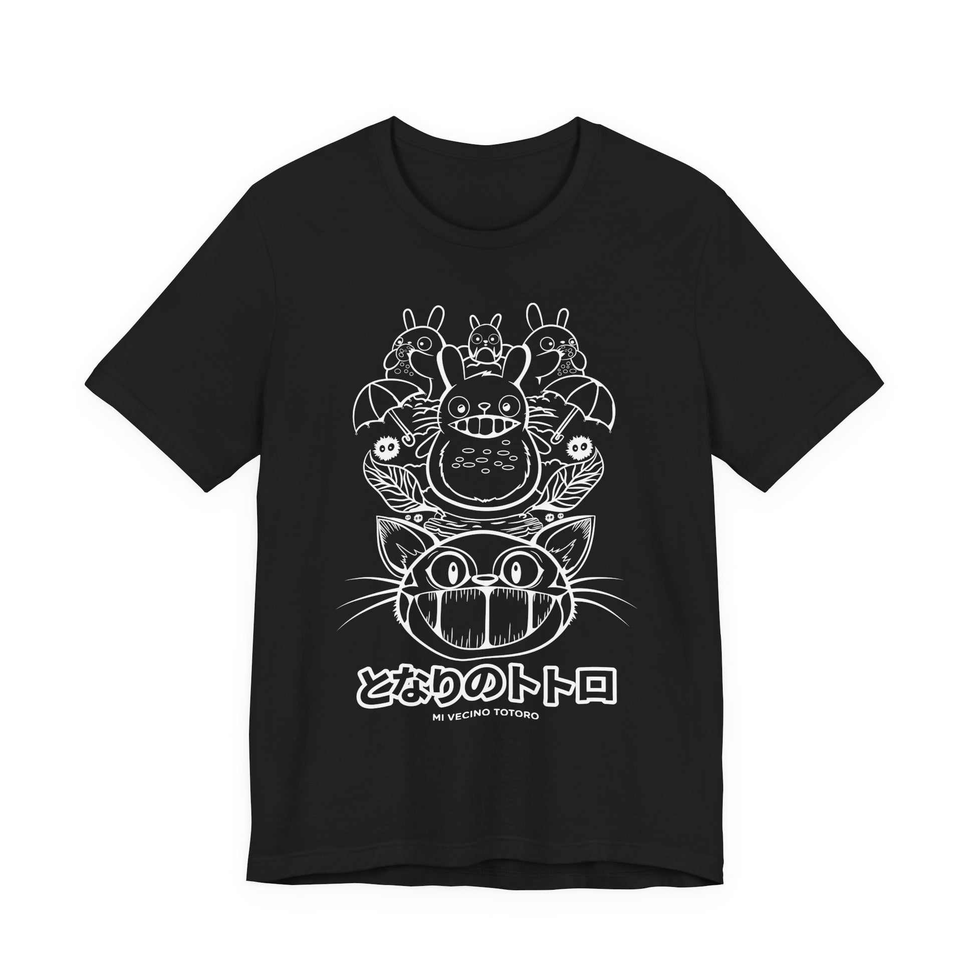 Bring home the forest’s gentle magic with the Forest Spirit Stack Shirt — a charming tribute to My Neighbor Totoro. Featuring a stack of Totoros crowned by the Catbus and accented with bold Japanese typography, this design balances whimsy and collector detail perfectly.