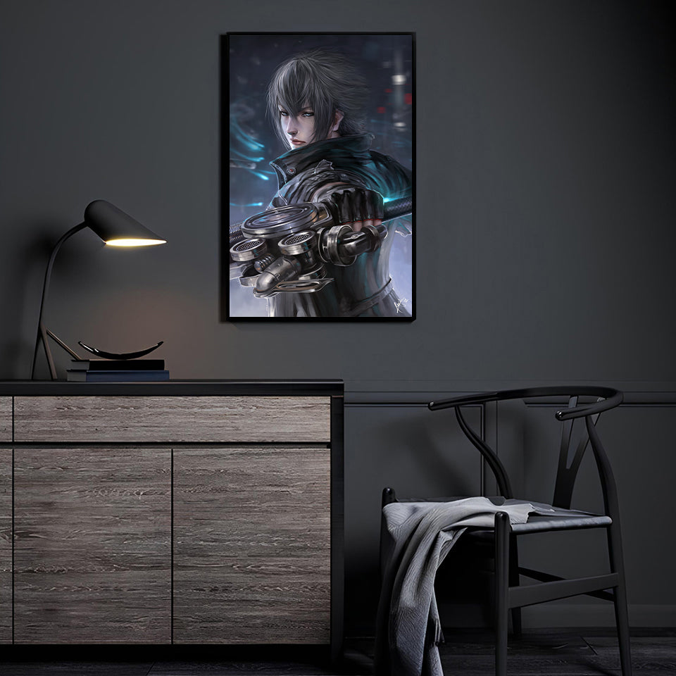 Amid the neon fog of Insomnia, Noctis Lucis Caelum turns toward the future with his engine-blade poised. Blue light ripples... Read more