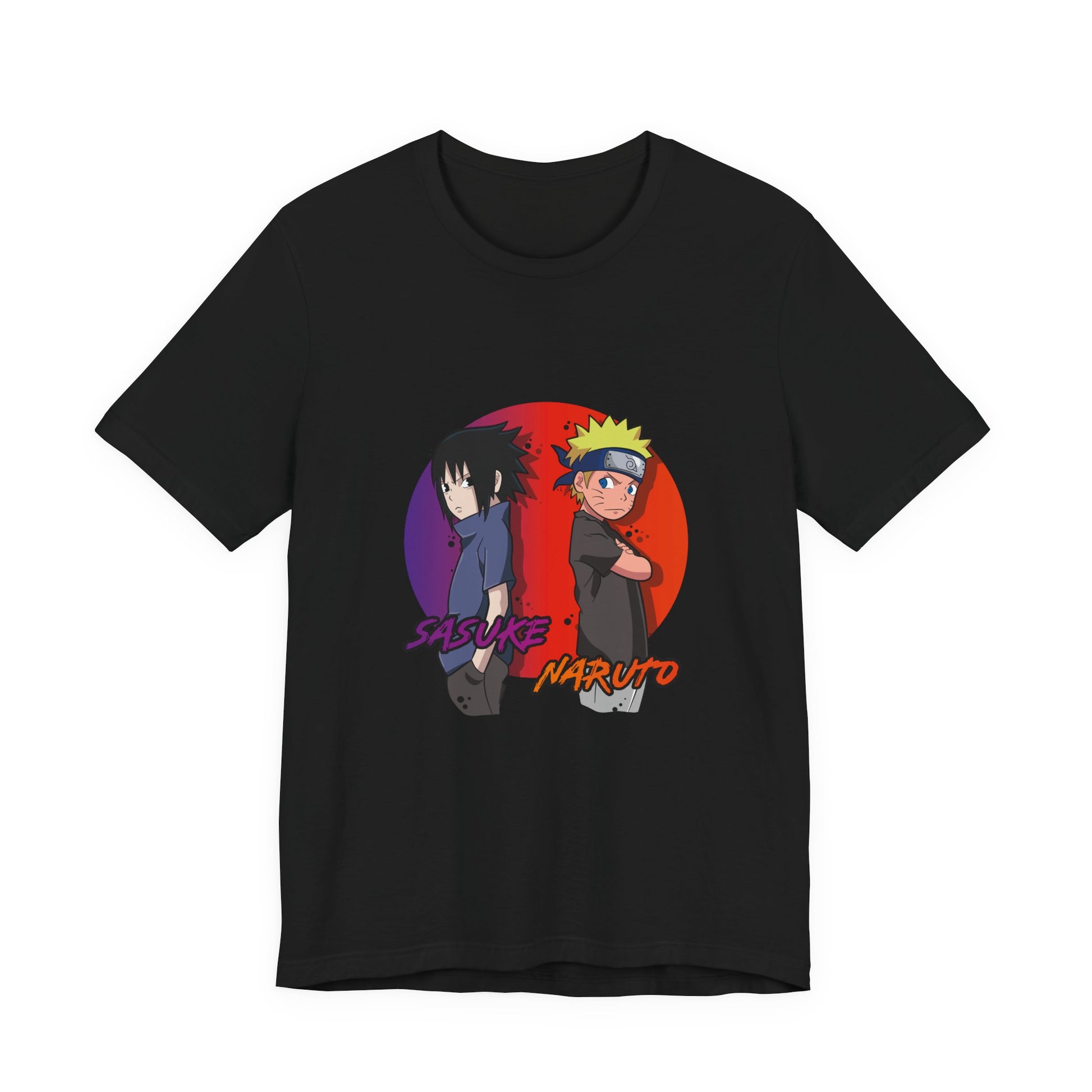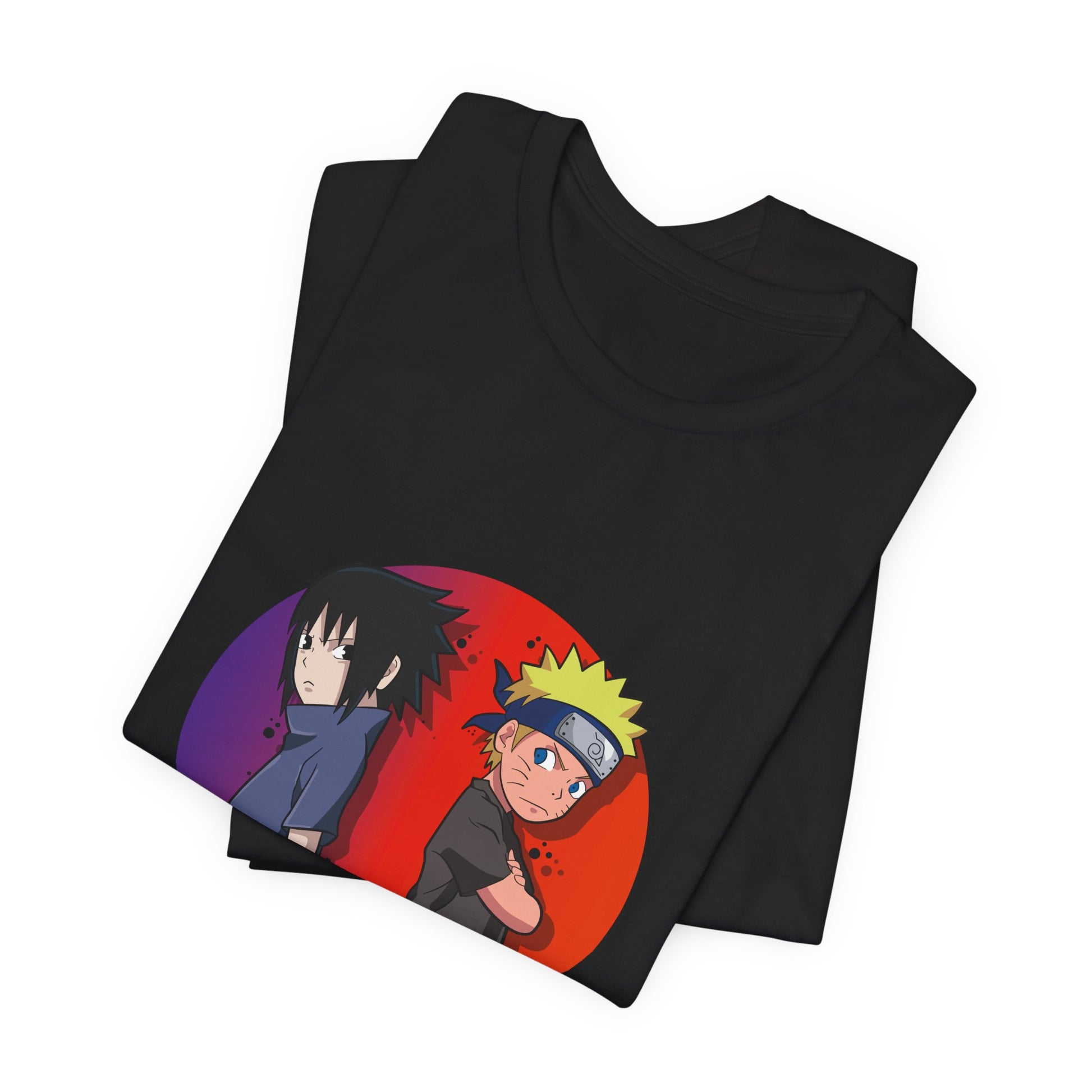 Embrace the rivalry that defined a generation. This shirt captures Naruto Uzumaki and Sasuke Uchiha back-to-back in striking contrast, symbolizing friendship, rivalry, and strength.