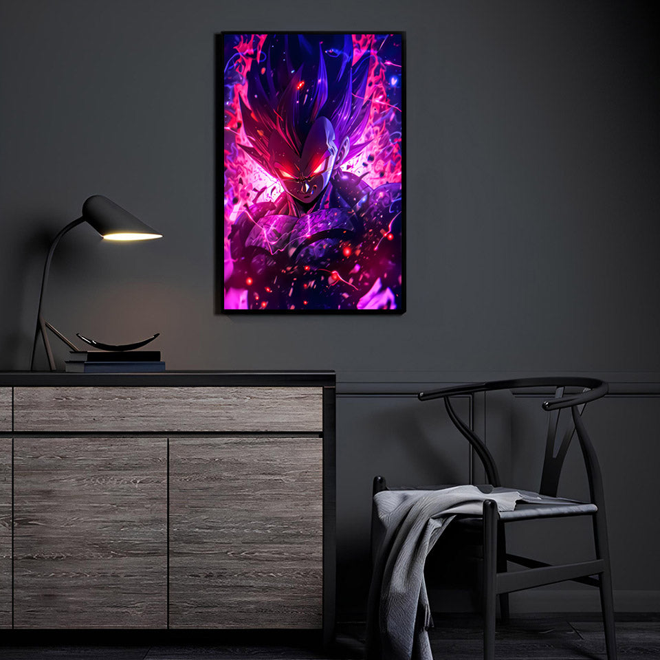 Vegeta stands consumed in unstoppable rage, his Saiyan power blazing around him in violent purple energy as his eyes burn... Read more