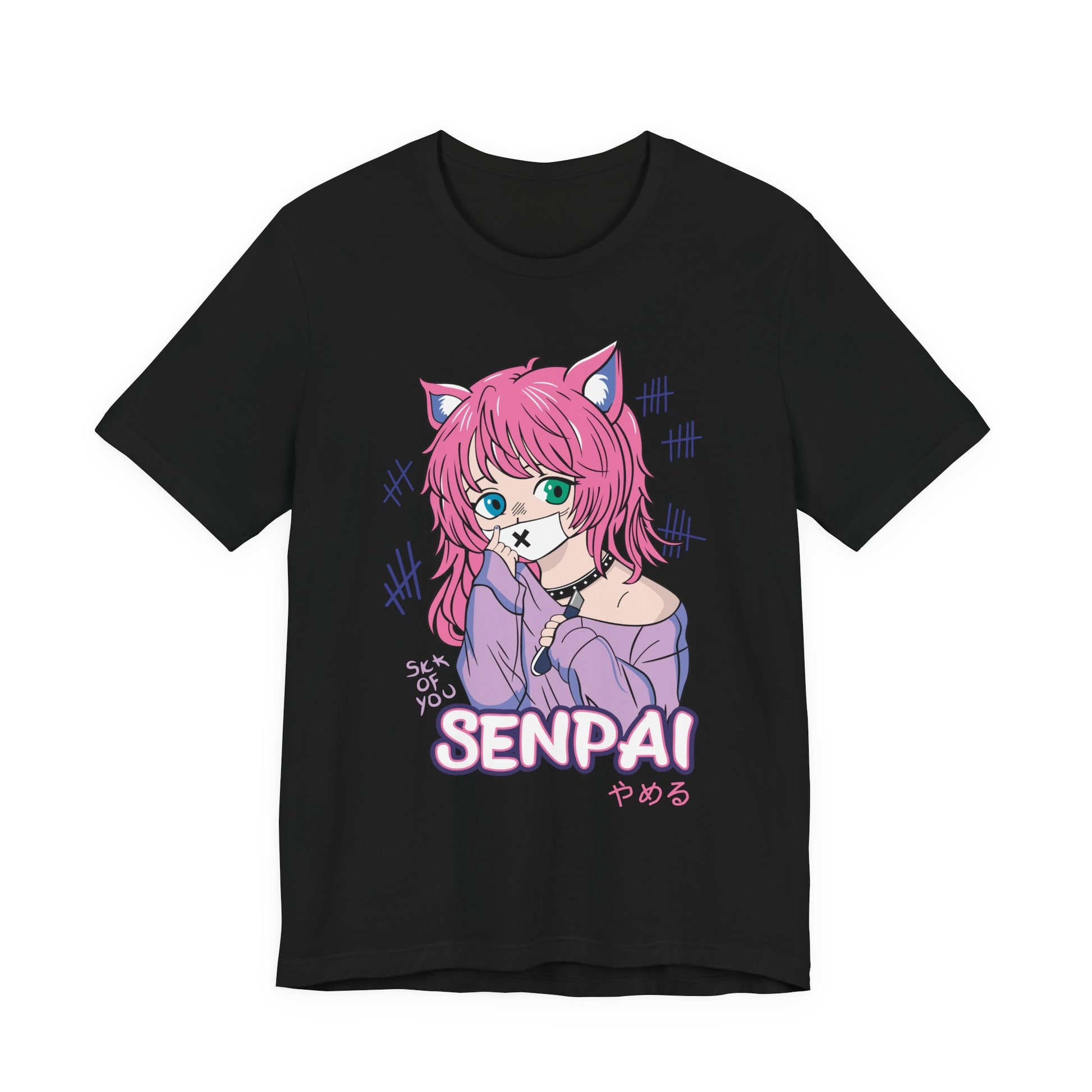 Express your inner otaku with the Senpai Cat Girl Shirt, a playful fusion of anime aesthetic and streetwear flair. The soft pastel palette and bold “Senpai” typography pop against the black tee, while subtle Japanese lettering and hand-drawn details give it collector-level charm.