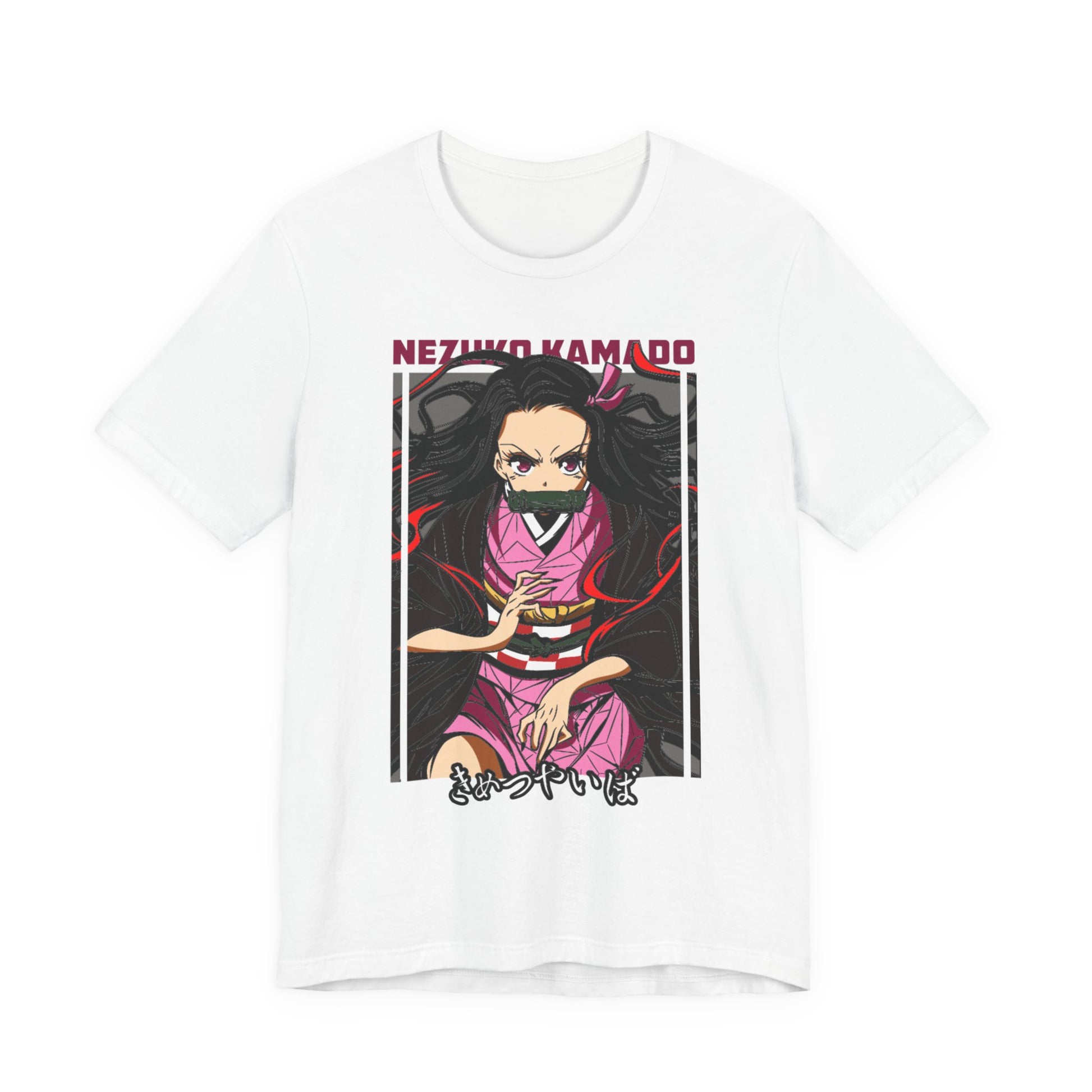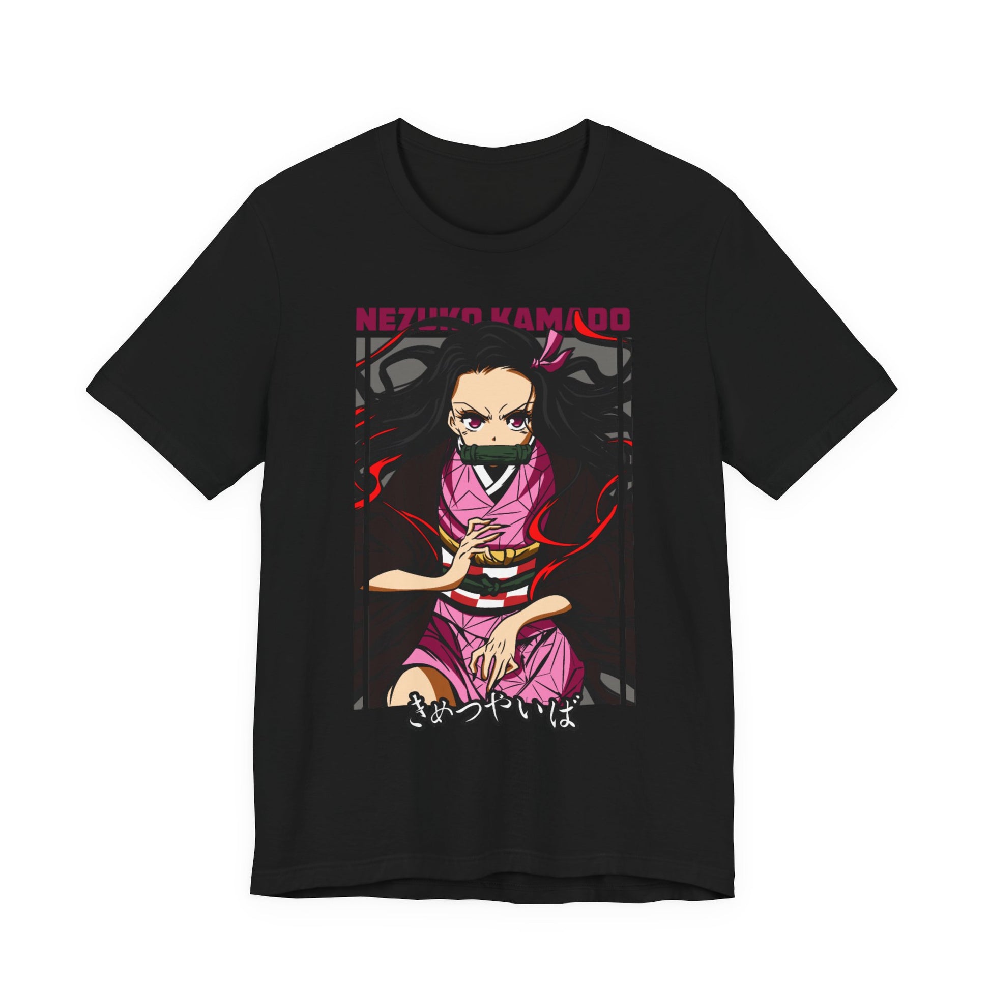Channel the quiet strength of Nezuko Kamado with this striking anime shirt inspired by Demon Slayer: Kimetsu no Yaiba. The vivid magenta tones and determined stance capture her fierce spirit and grace.