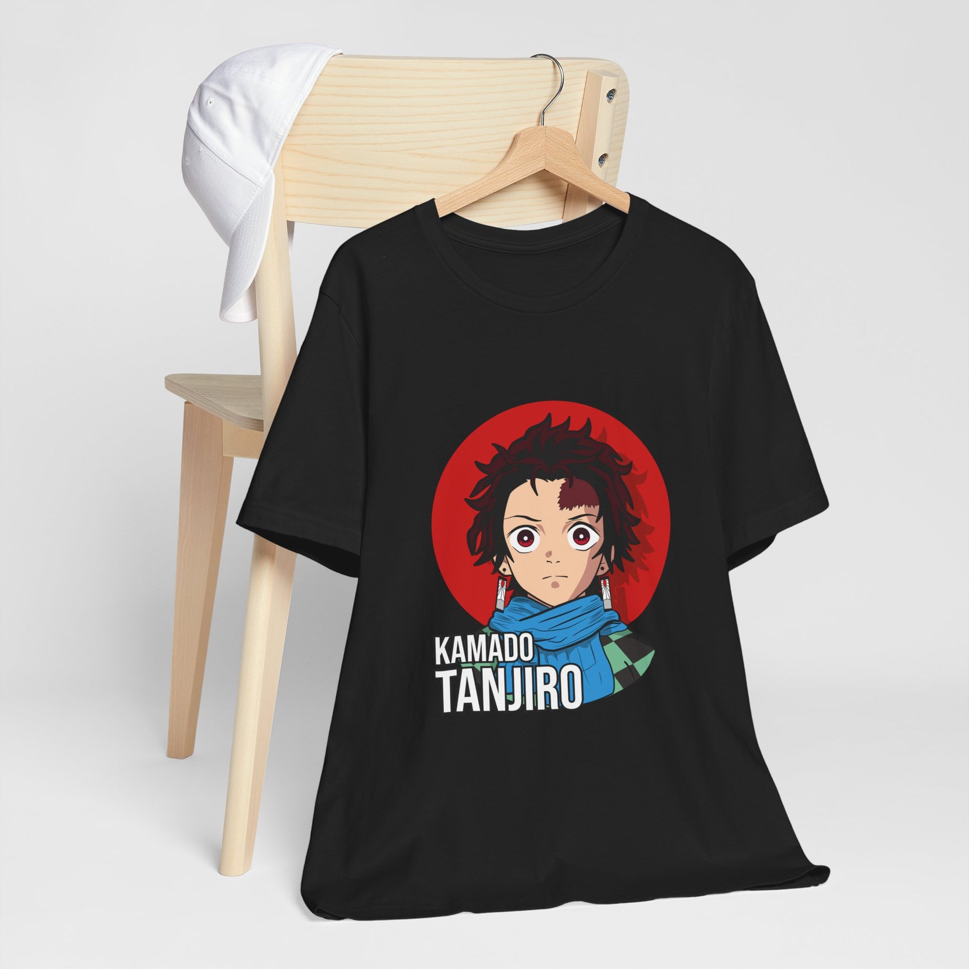 Embrace the warmth and strength of the Sun-Breath Resolve Shirt, featuring Demon Slayer’s Tanjiro Kamado in a minimalist, vibrant composition. The bold red circle backdrop symbolizes the rising sun and Tanjiro’s flame-infused spirit, contrasted by cool blues for visual balance.