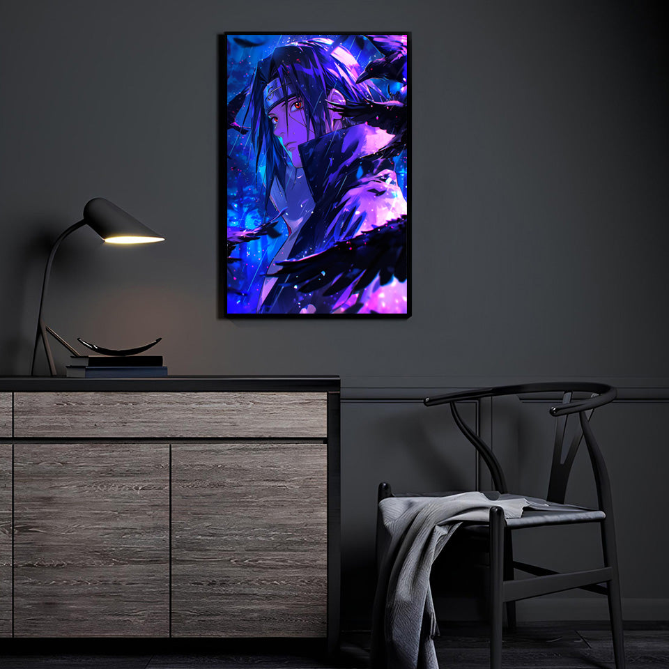 The crows gather as rain falls in silence, Sharingan glowing crimson with the weight of impossible choices, eyes heavy with... Read more